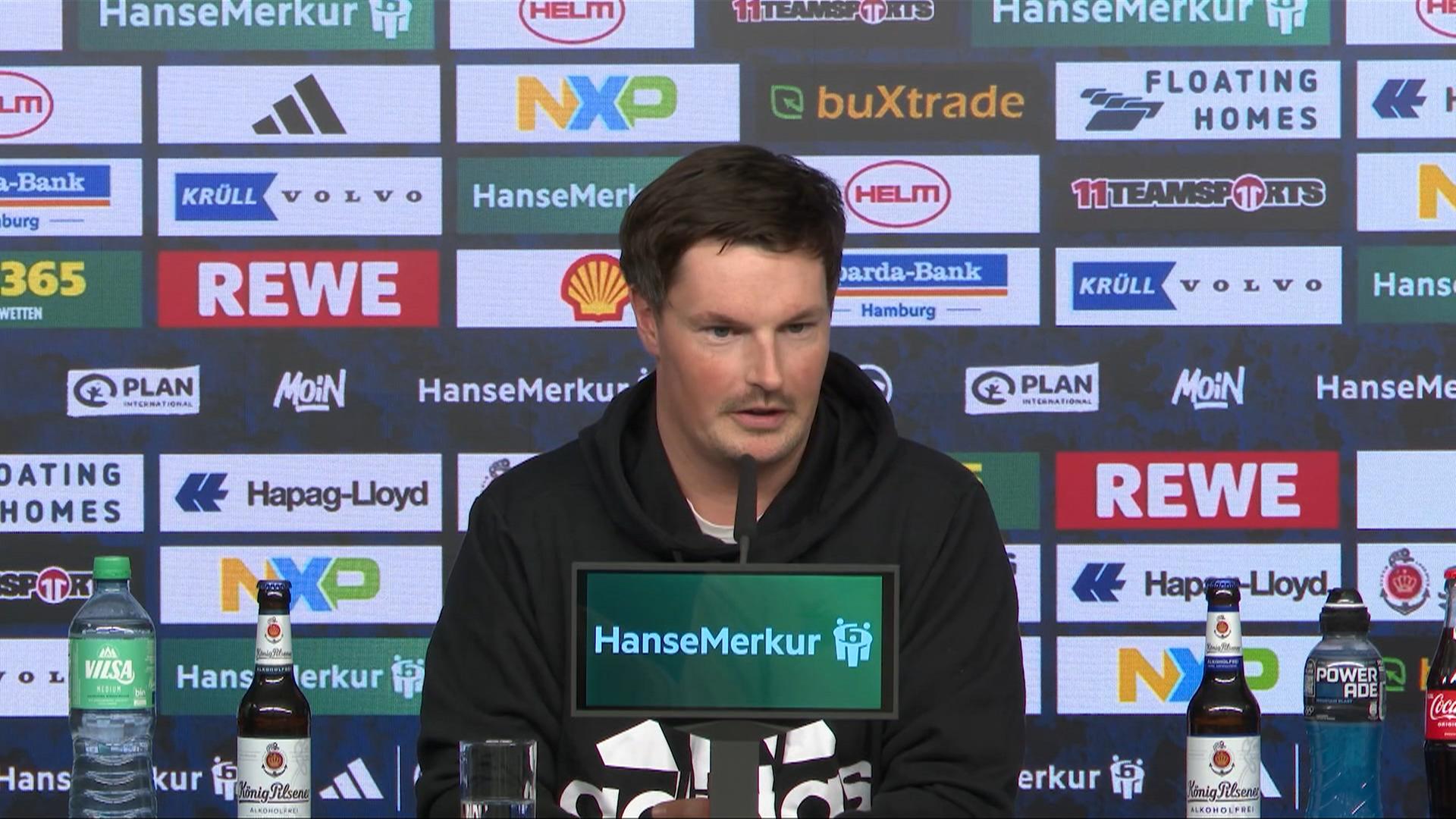 Auf der Pressekonferenz vor dem Nachholspiel gegen Leverkusen spricht Hamburgs Trainer Merlin Polzin über die hohe körperliche Belastung durch das zusätzliche Spiel unter der Woche.[mehr]